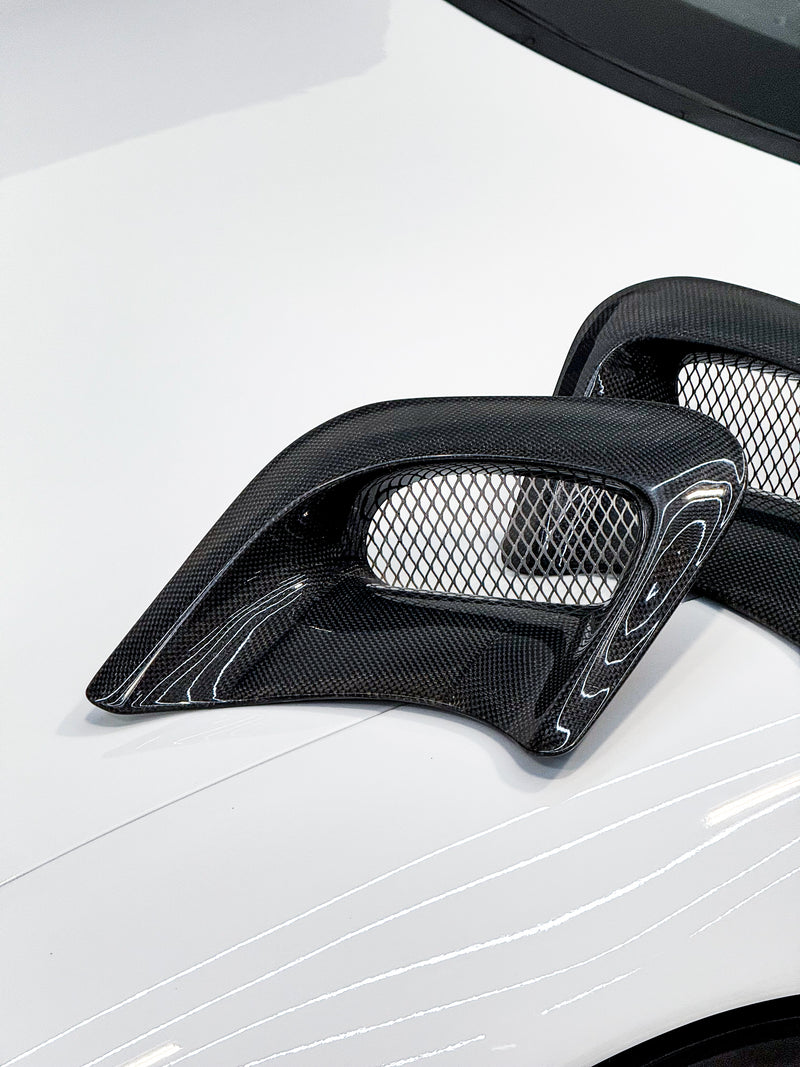 These vents are a replacement for the factory fender outlets. Improved design allows for enhanced airflow from the front braking area. Maintain lower temperatures within the wheel wells while also improving vehicle style.